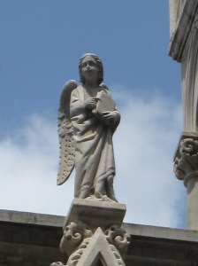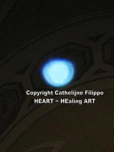 Toen ik me richting de uitgang van de kerk begaf, heb ik een kaarsje aangtestoken en deze gewijd aan Michael. Ik nam daarna een foto van de inmiddels verlaten kerk en ziedaar! Een schitterende, blauwe orb verscheen op mijn camera! Het lijkt een beetje op een schild. Wat een buitengewoon geschenk van de grote aartsengel! Toen we terugkwamen in ons appartement heb ik besloten om een van de Aartsengel Michael kaarten van Doreen Virtue plukken. Ik neem ze normaal nooit mee op vakantie, maar had ze vlak voor vertrek in een impuls bij mijn spullen gestopt. De kaart had als boodschap onbevreesd vooruit te gaan. En een deel van de Beschrijving van de kaart was hetzelfde als Michaels bemoedigende boodschap voor mij eerder vandaag! Een mooie bevestiging.