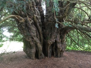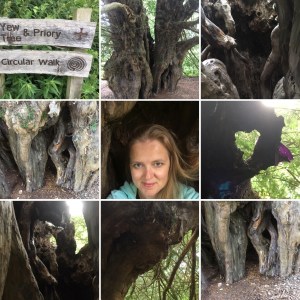 leven gebeuren. Die dag wandelden we in de buurt bij Windsor en maakte we kennis met een gigantische taxusboom. Naar schattig zou deze 2500 jaar oud zijn. Na een wandeling door velden en langs de rivier, kwamen we aan bij de boom. Je moest echt onder het gebladerte door kijken en bukken om de stam te kunnen zien, die gigantisch was. De stam was als het ware hol en daar weer gevuld met nieuwe stammen. Zo was het een wirwar van stammen en overal kon je elfenpoortjes in de boom zien, mar ook waren er gezichten zichtbaar in de knoesten.