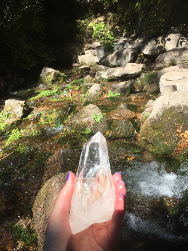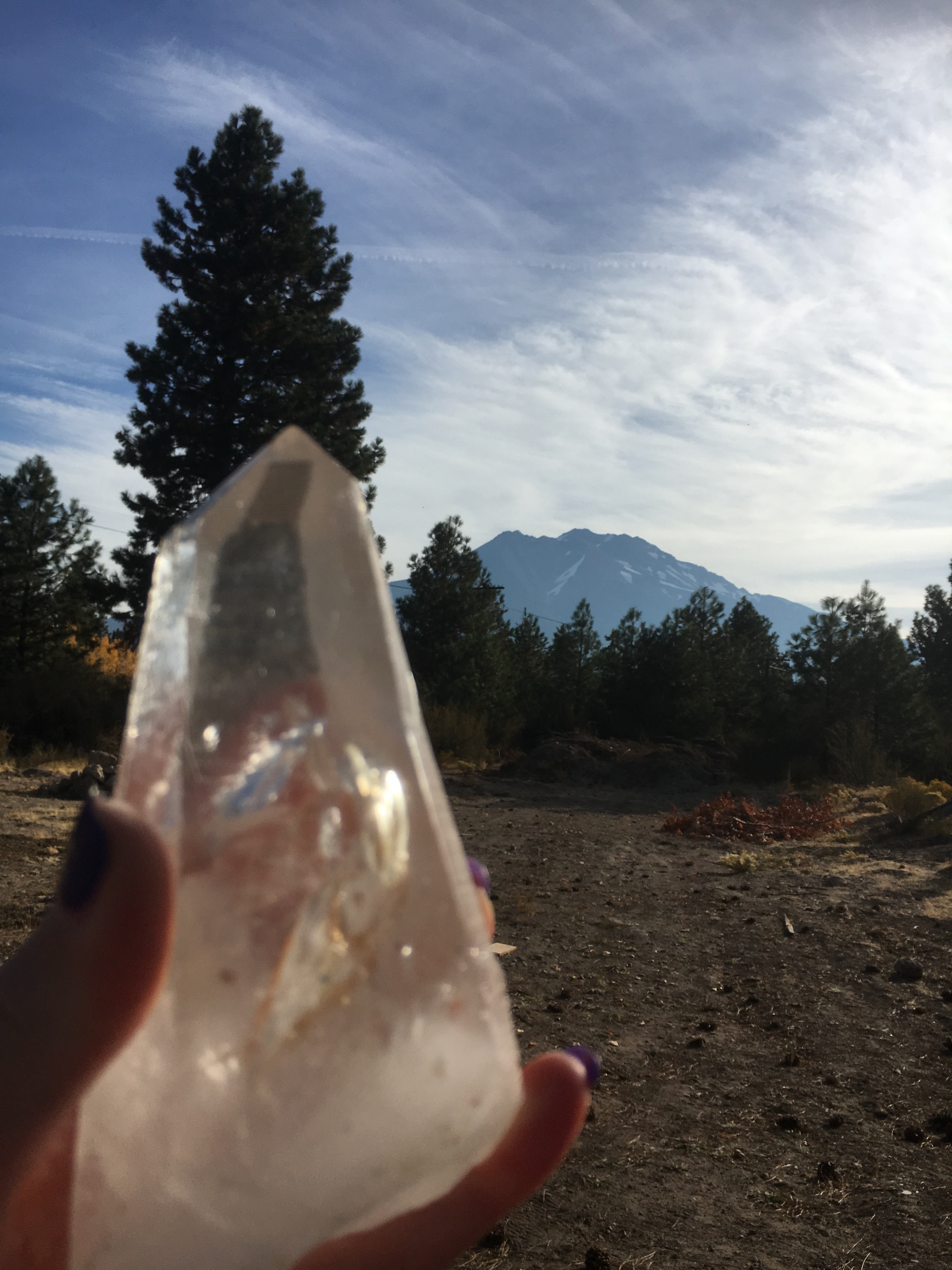 Mijn vorige blog eindigde bij onze aankomt in Mount Shasta. De berg leek me echt te roepen. Wat een krachtige vortex. Een diepe, stille kracht vol eeuwenoude wijsheid. We hadden er feitelijk maar een dagje, dus we begonnen de dag in Mount Shasta City waar we bij een van de new age winkels een boekje vonden met twaalf krachtplekken rond Mount Shasta. Leuk genoeg, bleek Burney Falls er eentje van de zijn. Ik kocht daarnaast prachtige posters, boeken, een Lemurisch orakel en…een heel bijzondere steen waarvan ik voelde dat die mijn connectie met Mount Shasta, dienst ondergrondse lichtstad (in de vijfde dimensie) Telos en de Lemurische gidsen zou ondersteunen. Het was een Diamantine Laser Wand en het leek wel of er een gouden vlam in opgesloten zat.
