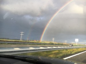 omdat de energie er zo hoog is. Terwijl we terug reden verscheen er een regenboog aan de hemel. Dit was al de derde tijdens het bezoek van mijn vriendin en deze werd steeds krachtiger en groter en werd toen dubbel. Opeens was hij weg en het leek of we erdoor heen waren gereden. Wel heel bijzonder tijdens een poortdag, want het voelde als een poort waar we doorheen waren gereden. Daarna ontstond er prachtig gouden licht. Gisteren hadden we ook dergelijk licht gezien aan zee. Wanneer wij samenkomen lijken er altijd poortdagen of lichtfenomenen plaats te vinden. Het zijn stuk voor stuk momenten van magie en zegeningen van licht.