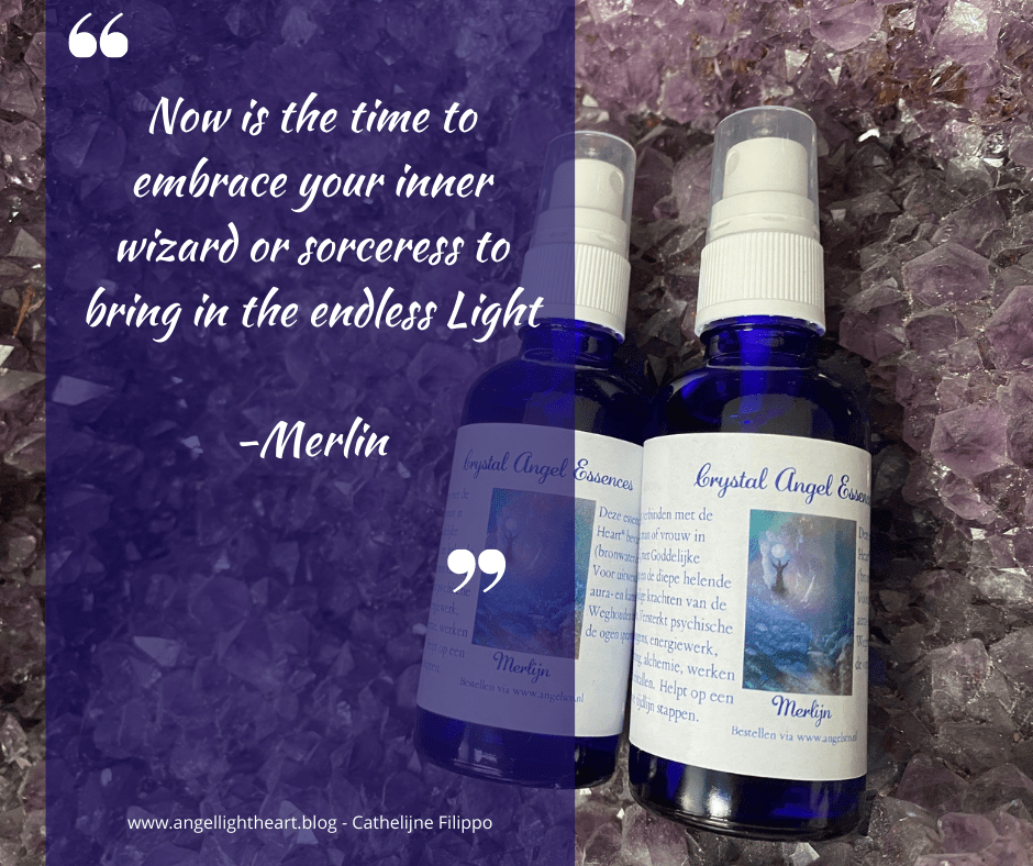 Ik voelde afgelopen volle maan de roep om de Merlijn essence opnieuw te maken. Het was duidelijk de bedoeling, want ik ontvang de hele week Merlijn-tekens via mensen boeken en dergelijke. Zijn energie is duidelijk heel voelbaar voor velen.