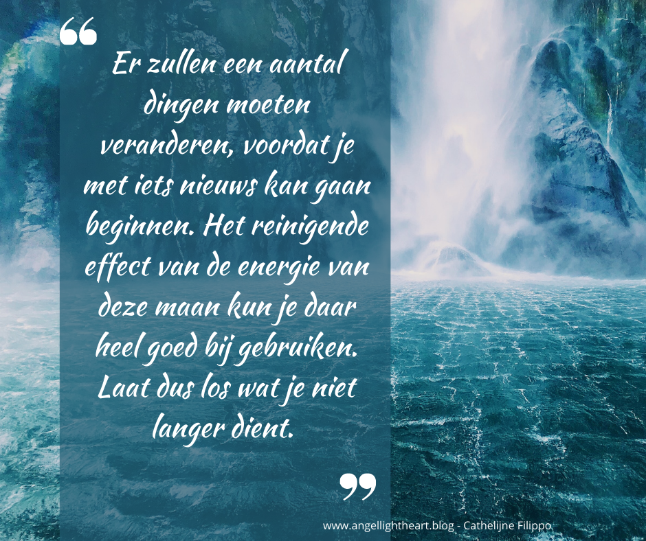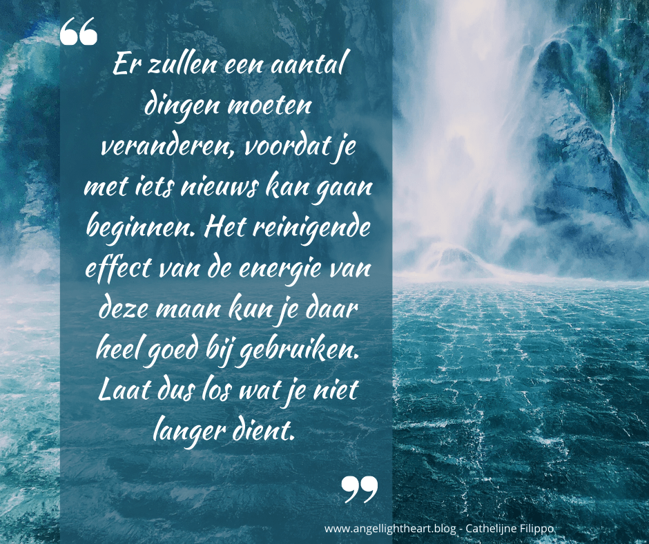 Deze maan is bij uitstek weer een moment om zaken op een rijtje te zetten. Velen zullen aan het einde van 2021 al bezig zijn geweest met het achterlaten van alles wat niet echt belangrijk meer is. De vorige maanmeditatie heeft daar wellicht bij mogen helpen. Maar mochten er nog andere zaken zijn die ook losgelaten mogen worden, dan is deze volle maan een goed moment. Dit maakt ruimte voor nieuwe zaken die in de nieuwe cyclus op je pad zullen komen. Er zullen een aantal dingen moeten veranderen, voordat je met iets nieuws kan gaan beginnen. Het reinigende effect van de energie van deze maan kun je daar heel goed bij gebruiken. Maak gebruik van deze reiniging om jezelf schoon en leeg te maken om het nieuwe zuiver en goed te kunnen ontvangen.