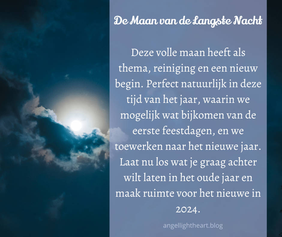 Morgen is het de Maan van de Langste Nacht en deze heeft als thema, reiniging en een nieuw begin. Perfect natuurlijk deze tijd van het jaar, waarin we mogelijk wat bijkomen van de eerste feestdagen en we toewerken naar het nieuwe jaar.