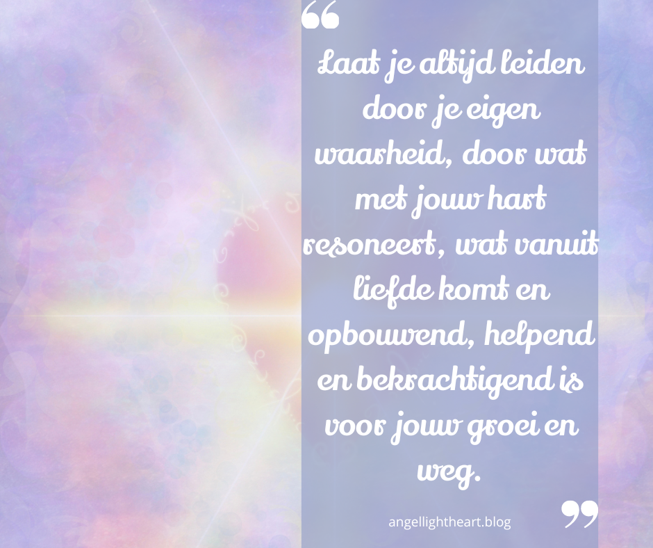 Hoe zit dat? Het zijn deze vragen die ik op een later tijdstip dieper hoop te behandelen in een langer durend traject. Maar voor nu vond ik het belangrijk toch alvast mee te geven wat ik hierover door heb gekregen. Echter, wat ik doorkrijg is gefilterd door mijn perceptie en waarneming, dus het is een zienswijze. Wat een spiritueel leraar of wie ook tegen je zegt: voel altijd in je eigen hart en vraag je af ‘resoneert dit?’ en ‘is het helpend of afbrekend?’ en ‘komt dit uit liefde of uit angst?’ Laat je vervolgens leiden door je eigen waarheid, door wat met jouw hart resoneert en wat vanuit liefde komt en opbouwend, helpend en bekrachtigend is voor jouw groei en weg.