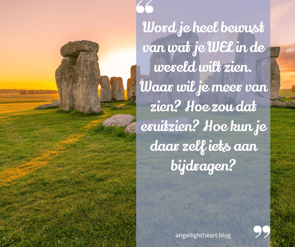 - Het tweede wat we kunnen doen is heel bewust worden van wat we WEL in de wereld willen zien. Waar willen we meer van zien? Hoe zou dat eruitzien? Hoe kunnen we daar zelf iets aan bijdragen?