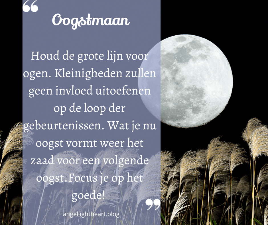 Deze week stond de maan al prachtig aan de hemel en morgen is hij vol. Deze volle maan staat bekend als de oogstmaan. Ik ben wat later met het posten van deze blog omdat mijn herstel van een hardnekkig virus wat langer duurt dan gehoopt. Ik ben voorlopig nog niet aan het werk, dus houd helaas rekening met langere wachttijden.