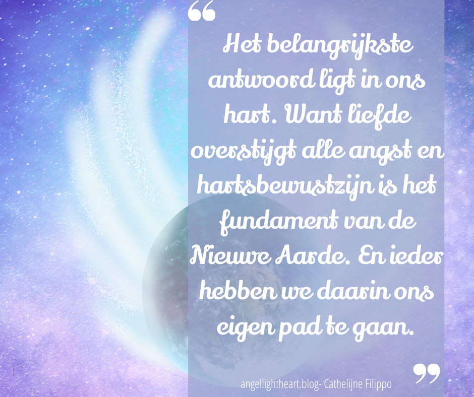 Het belangrijkste antwoord ligt in ons hart. Want liefde overstijgt alle angst en hartsbewustzijn is het fundament van de Nieuwe Aarde. En ieder hebben we daarin ons eigen pad te gaan.