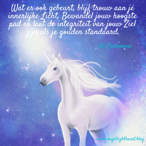 Ik voelde dat de boodschappen van de engelen en eenhoorns me hielpen om weer terug te keren naar mijn eigen centrum en af te stemmen op mijn hoogste Licht. We helpen de wereld niet wanneer we onze trilling verlagen. Verhoog eerst je trilling, en voel dan wat je kunt doen om met positieve acties een bijdrage te leveren. Dat kunnen grote of subtiele dingen zijn. Dat doet er uiteindelijk niet toe. Wat er toe doet is dat je daarbij je eigen hart en Ziel volgt.