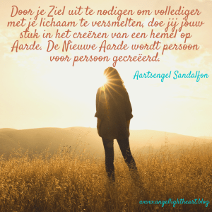 Door je Ziel uit te nodigen om vollediger met je lichaam te versmelten, doe jij jouw stuk in het creëren van een hemel op Aarde. De Nieuwe Aarde wordt persoon voor persoon gecreëerd.