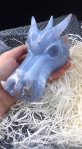 Vorige week werd me ingegeven dat de energetische drakenpoort** die ik enkele jaren geleden had geactiveerd, moest worden verplaatst en vergroot. Er zouden hoger dimensionale draken klaarstaan om met Lichtwerkers samen te werken en hiervoor was dus een transformatie en verplaatsing van de poort nodig. Dus ik heb vorige week met mijn drakengidsen samen dit mooie Lichtwerk gedaan. Ondertussen was er door twee verschillende mensen dezelfde link naar me gestuurd over een edelstenen drakenschedel die ze bij me vonden passen. ik was toch echt niet van plan er nog eentje aan te schaffen, want ik heb al een flinke clan staan. Maar diezelfde avond nog liet zich een heel etherische, zachtblauwe drakengids aan mij zien die aan de schedel gekoppeld was. Dus tja…wat doe je dan?