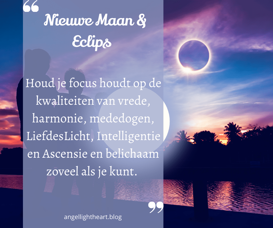 Het is mooi als je deze nieuwe maan je focus houdt op de kwaliteiten van vrede, harmonie, mededogen, LiefdesLicht, Intelligentie en Ascensie en deze belichaamt zoveel als je kunt. Hiermee draag je bij aan het verhogen op de trilling op Aarde en het creëren van een Nieuwe Aarde.